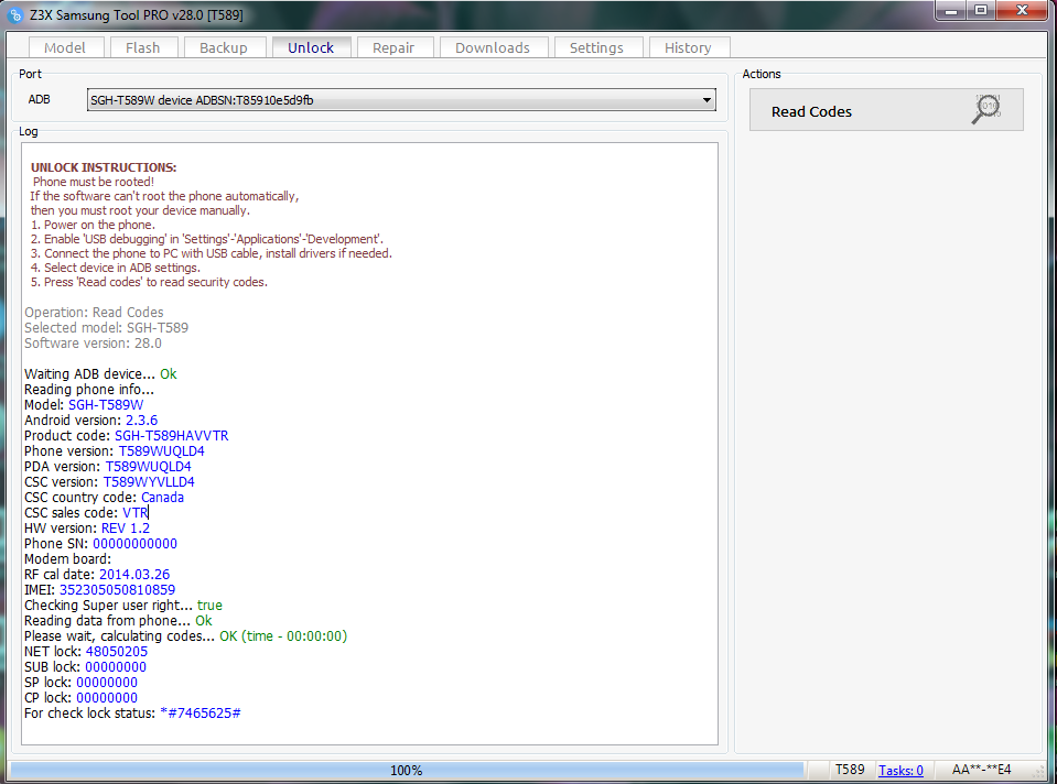 Samsung t589w direct unlock done with great z3x box operation: You press the lock key to lock and unlock the phone. Switch on your phone with a not accepted sim card, 2. Do you have questions about your samsung mobile phone? I can't get the imei code because the phone does not start.